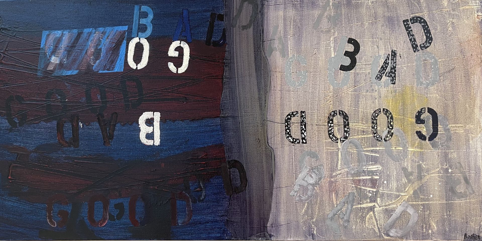 24" (W) X 12" (H) oil and acrylic painting, unframed c.2022